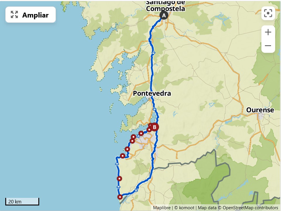En esta ocasión para seguir viajando con perro y con tiempo limitado, exploraremos más allá de fronteras en el país vecino Portugués. Realizando una ruta circular, dejando el coche de apoyo aparcado en la ciudad Compostelana de Santiago para dirigirnos hacia Tui, por el interior, siguiendo una ecovia o senda por la parte portuguesa hasta la población de Caminha, donde cruzaremos el río Miño en un mini Ferry hasta A Guarda y, desde ahí, seguiremos la costa pasando por Vigo hasta Redondela de nuevo y la recta final por donde empezamos. Como plan B, podemos acabar (o empezar) en Vigo, aprovechando las comunicaciones ferroviarias o alquilando un vehículo.